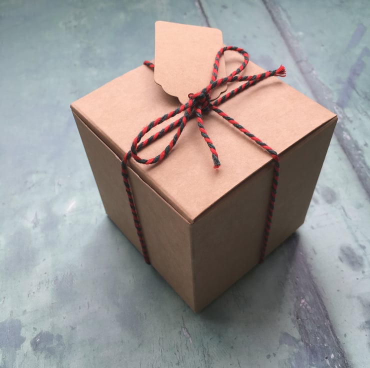 Each bauble is strung with festive red ribbon and is presented nestled in a kraft gift box.