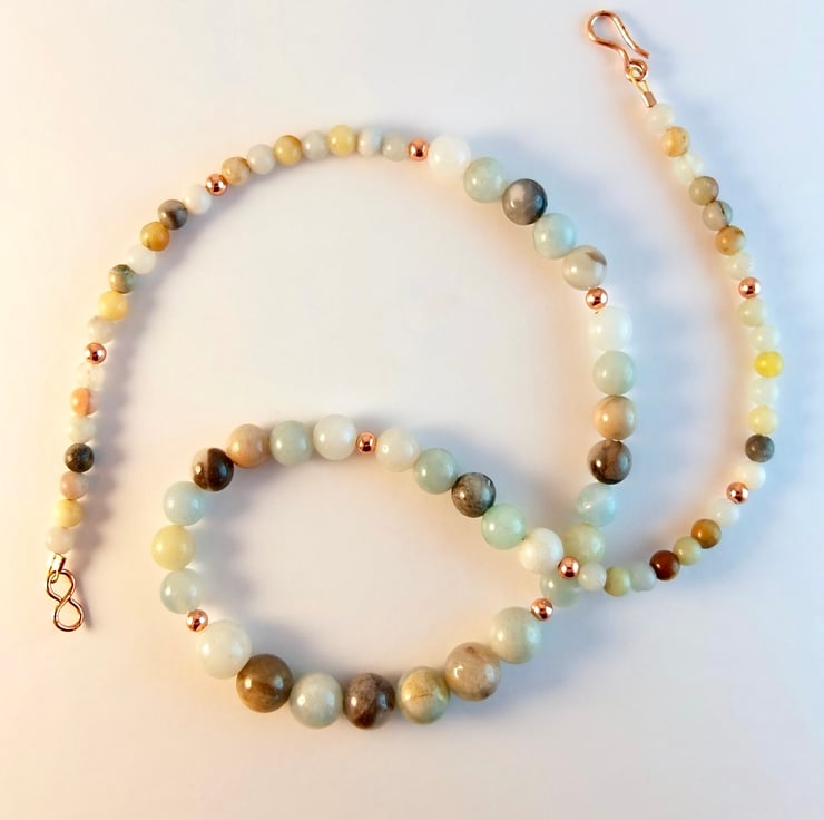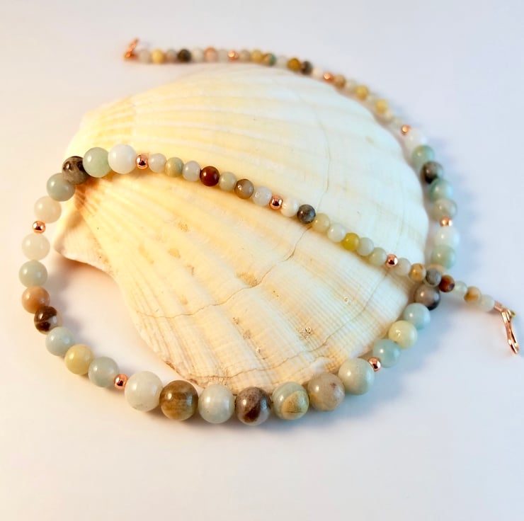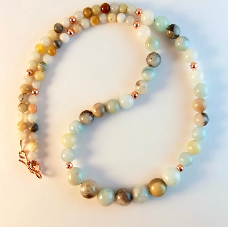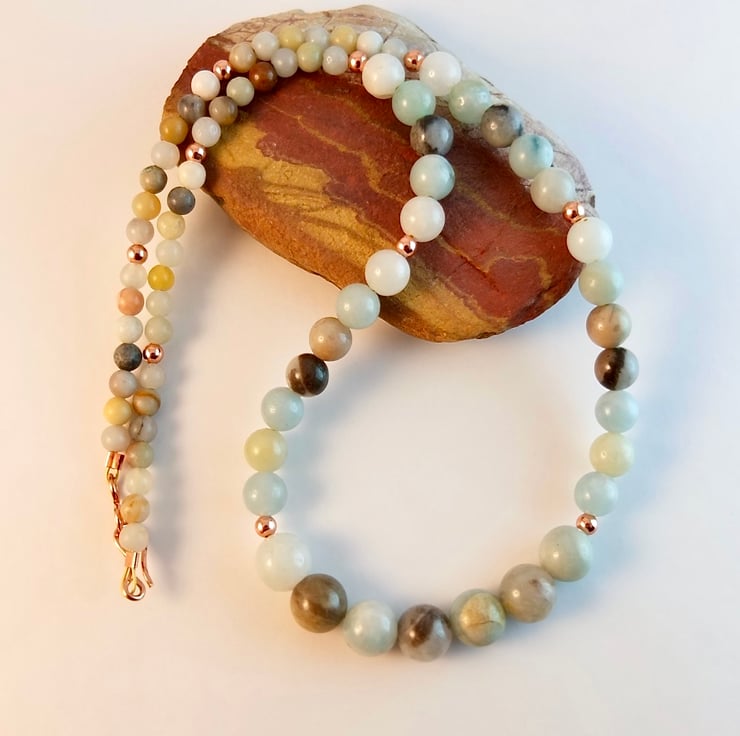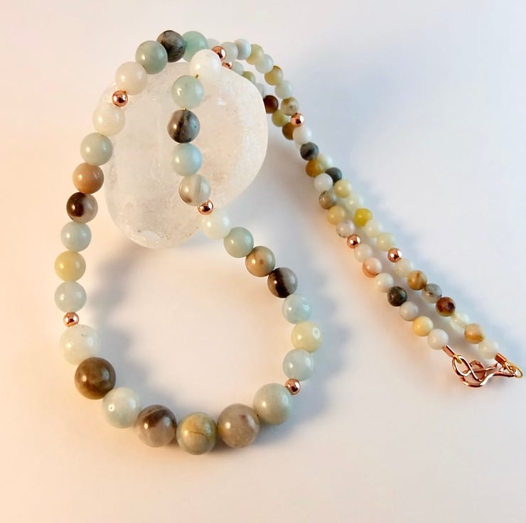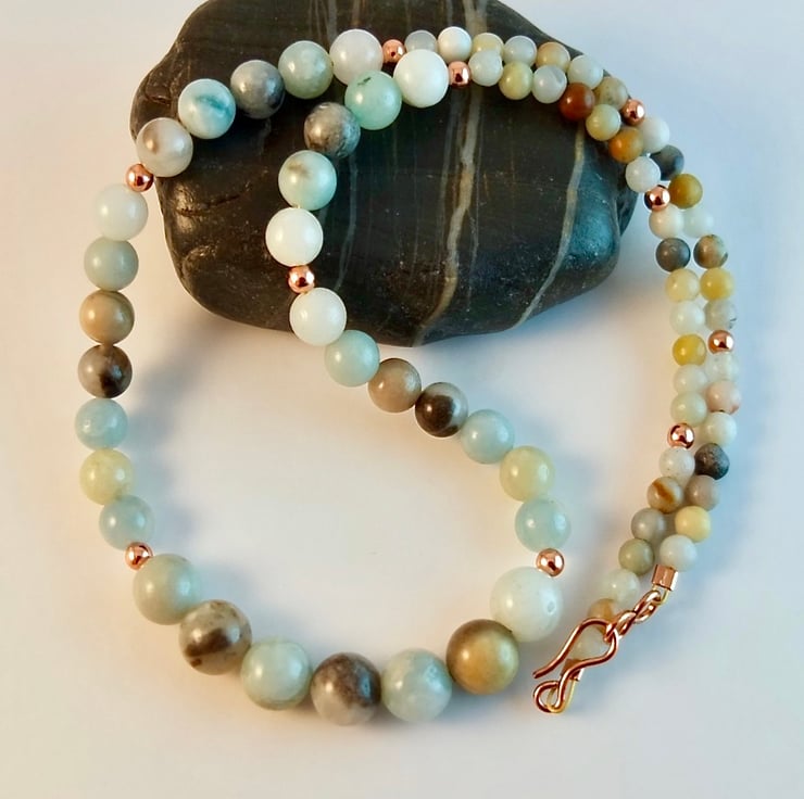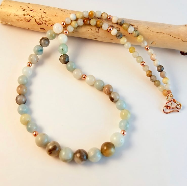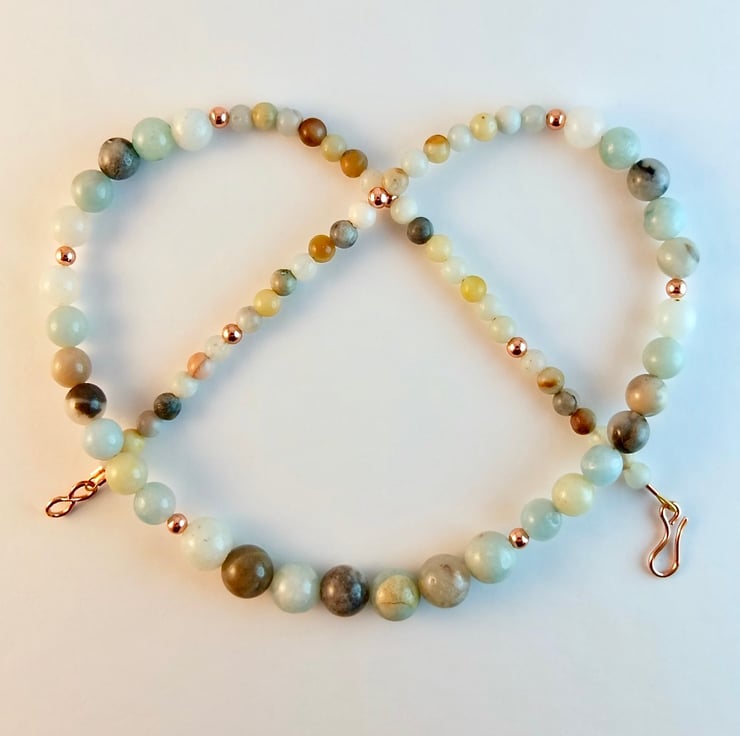 Pretty pastel blue-green Amazonite necklace embellished with tiny copper spacer beads.