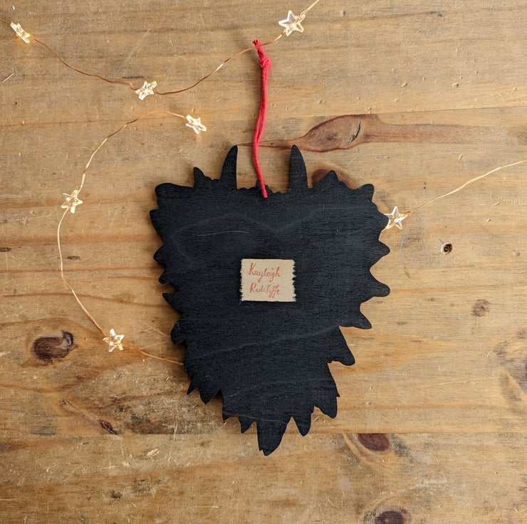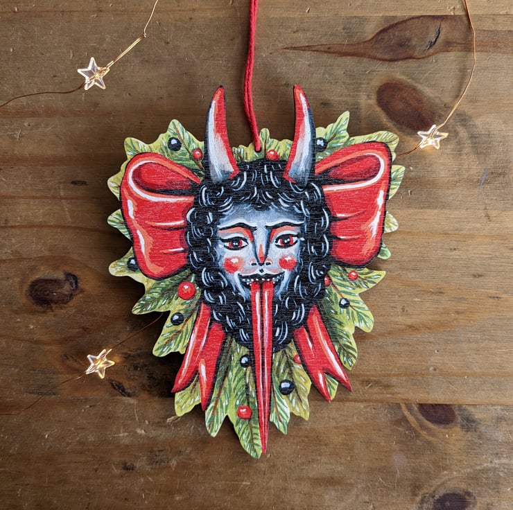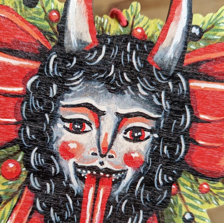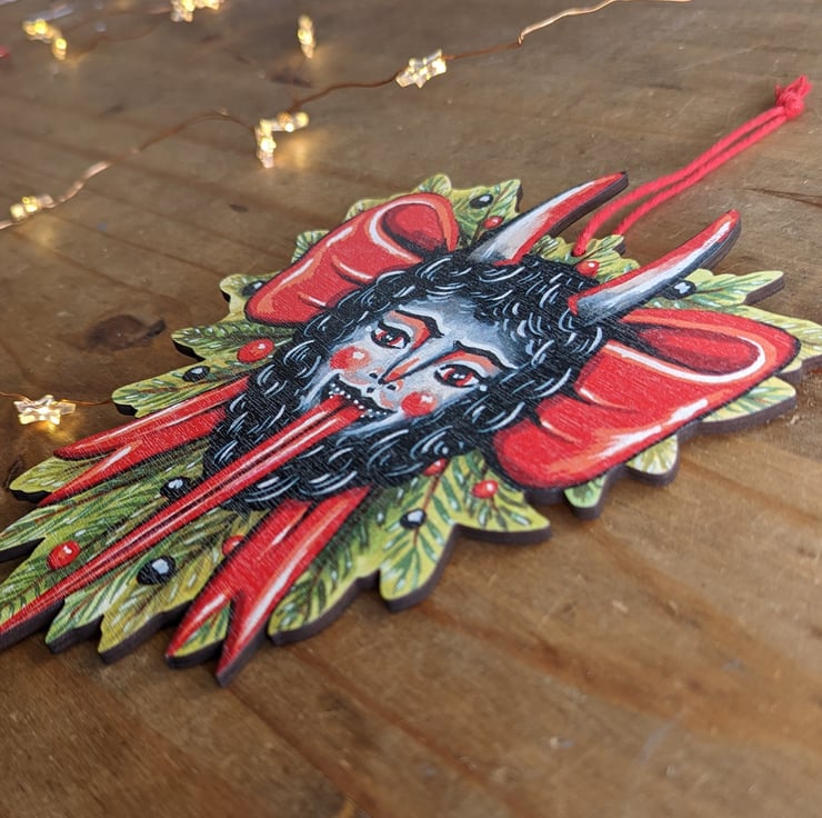 This Krampus wreath design/ illustration is my own creation. It was originally a gouache painting of mine which I then meticulously converted into a decoration- so you won't find another one like it anywhere else!
