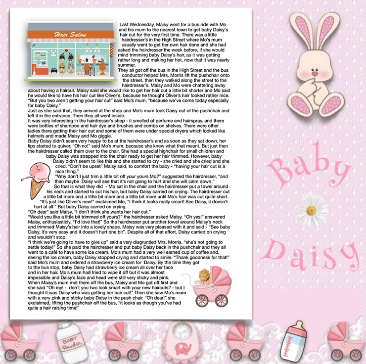 Daisy is one of the little characters from Mulberry Green. She is Mo’s baby sister and Maisy loves her to bits and often goes to visit Mo just so that she can play with Daisy.