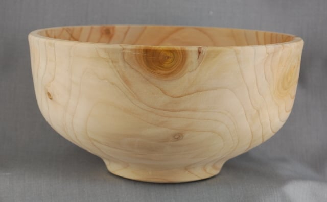 Cedar wood has a comforting scent inherent in every part of the tree. This bowl is simplicity itself and reveals the events the tree experienced while growing-stress lines from windy conditions, branch ends, and swirling grain. The smooth finish makes it a joy to touch and it measures approximately 18 cm in diameter and 9 cm high.