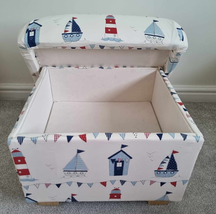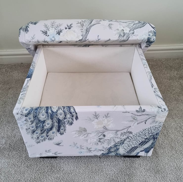 I am a professional upholsterer with over 33 years and have made this storage footstool myself, using Voyage Maizey Persimmon fabric.