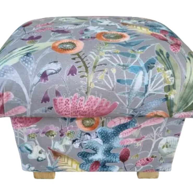 Storage Footstool Voyage Maizey Persimmon FabricFloral Pouffe Pink Grey