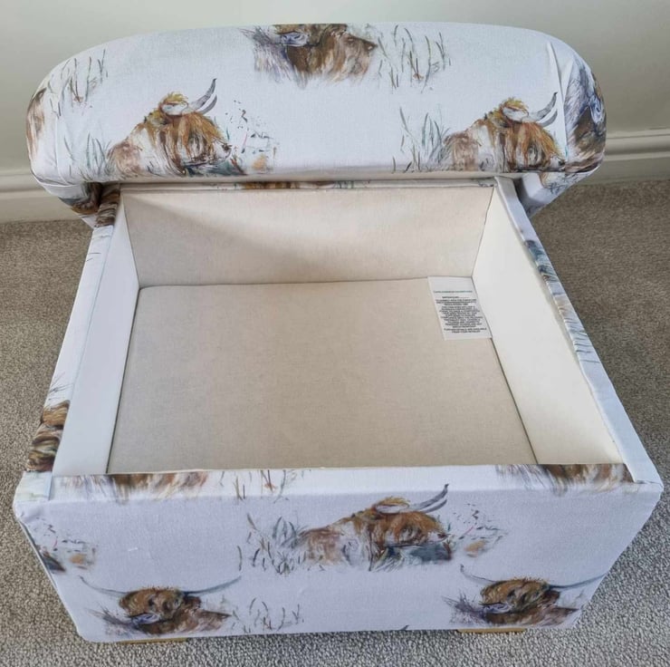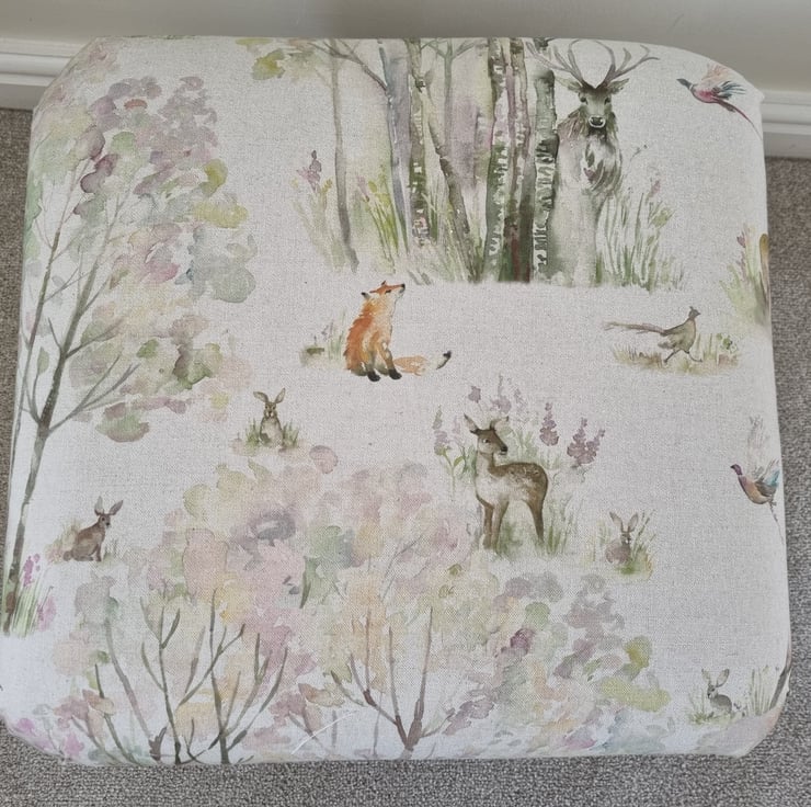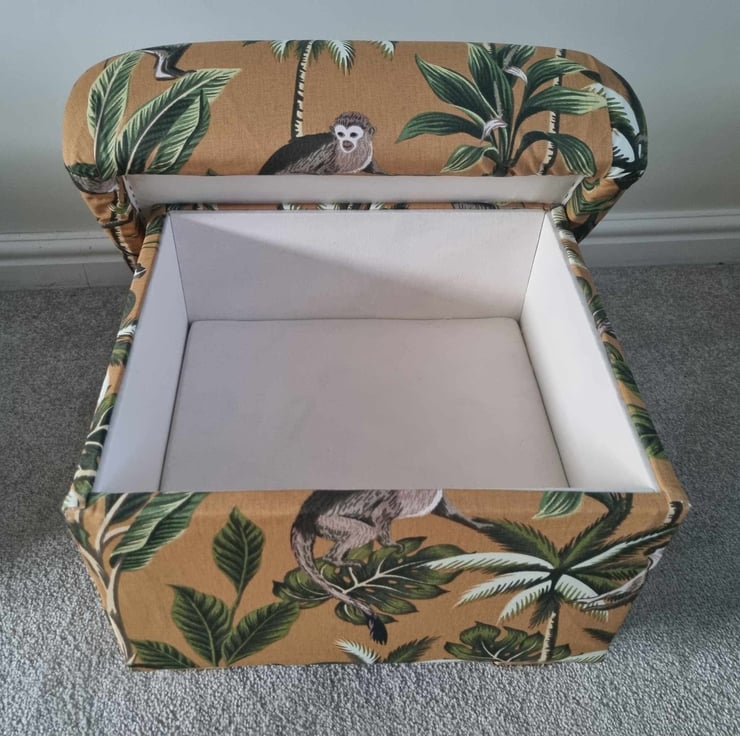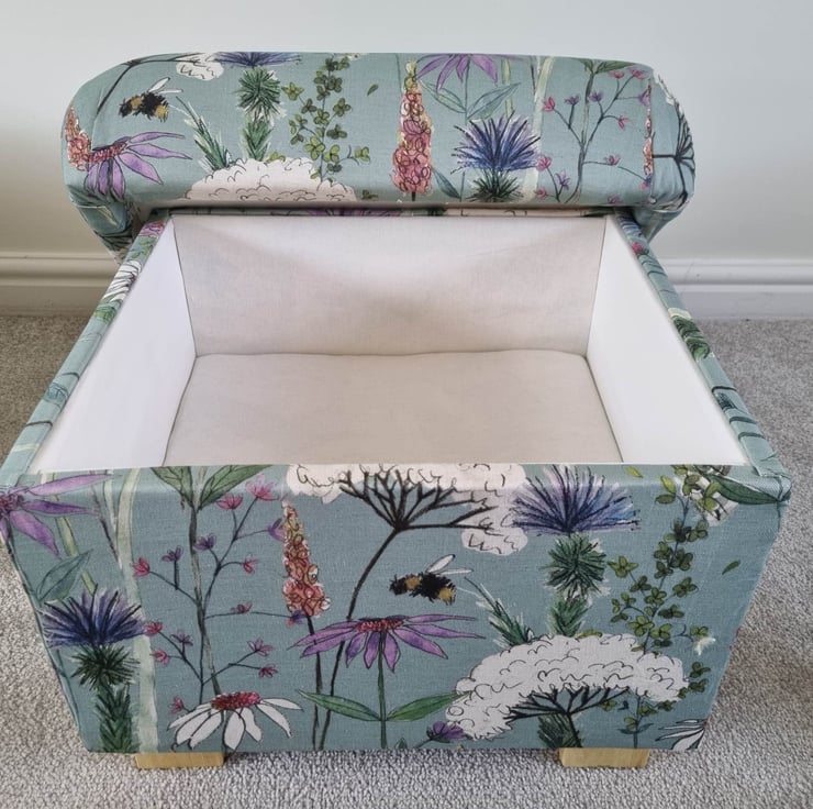 I am a professional upholsterer with over 33 years and have made this storage footstool myself, using Voyage Enchanted Forest fabric.