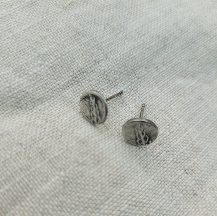 These recycled silver stud earrings have a fern leaf pattern and are more rustic in style than my usual fern leaf earrings.