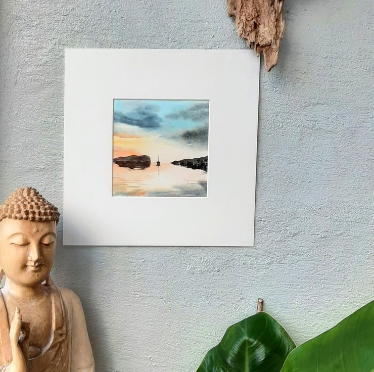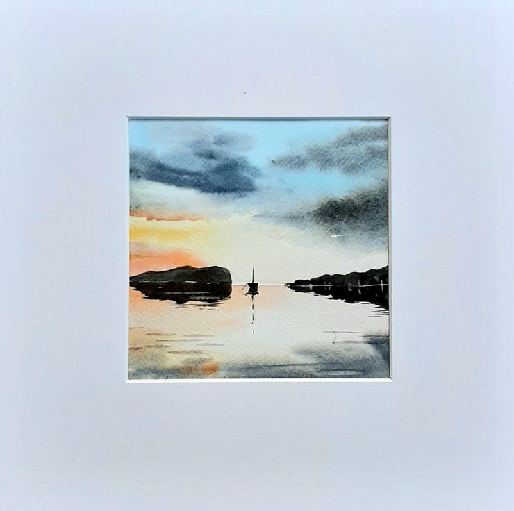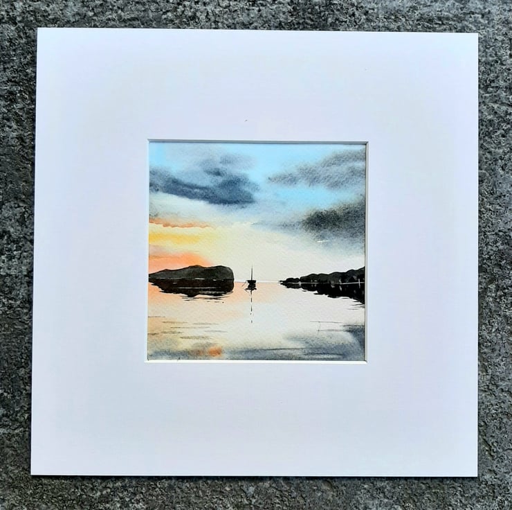 Painted on Fabriano paper and mounted in a white mount. Ready to frame.