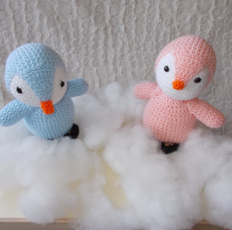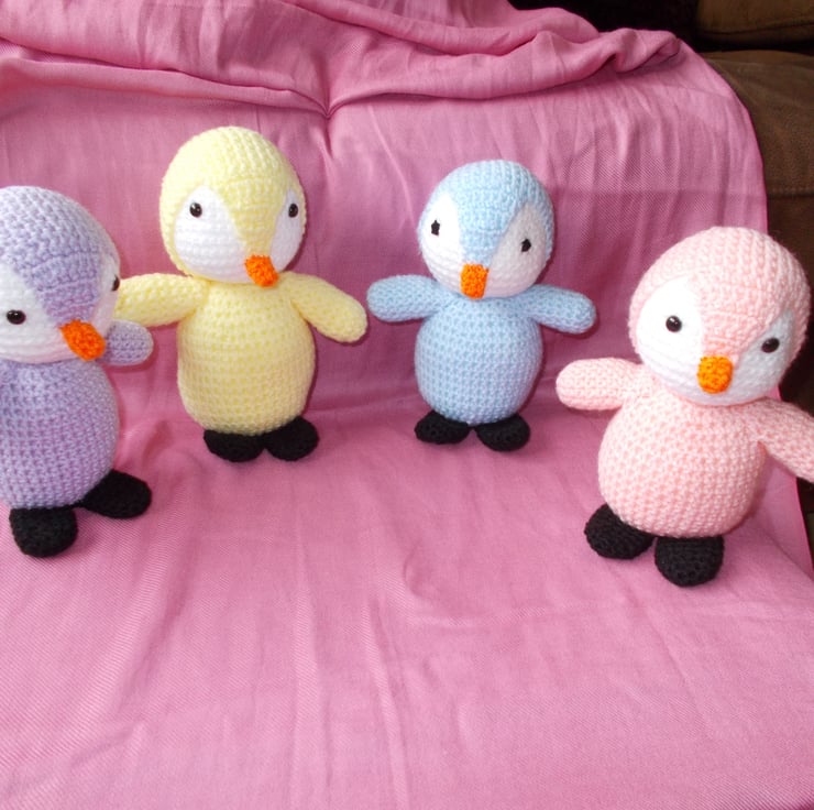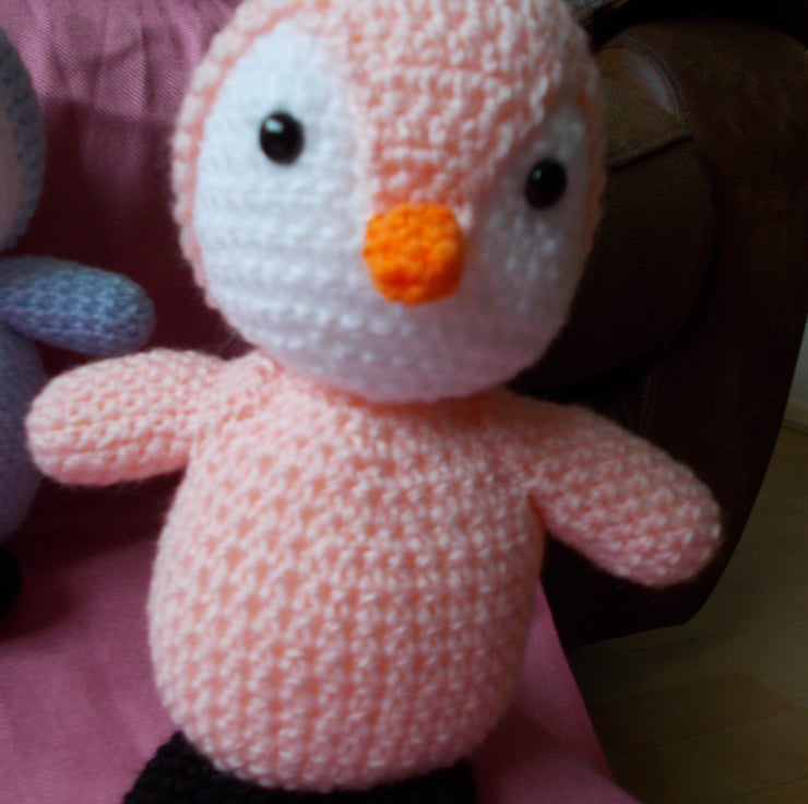 Handmade crochet penguins. 19cm tall 1x Peach. UKCA tested. This item is ready for immediate dispatch.other colors on request