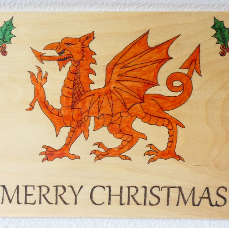 This eco friendly, rustic Welsh Dragon Christmas wooden sign, has been created with words completed in pyrography. It has been upcycled from reclaimed wood. This plaque would make a perfect present for numerous occasions such as an anniversary gift, a Christmas Gift or a housewarming gift.