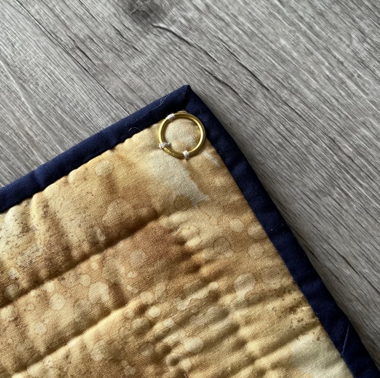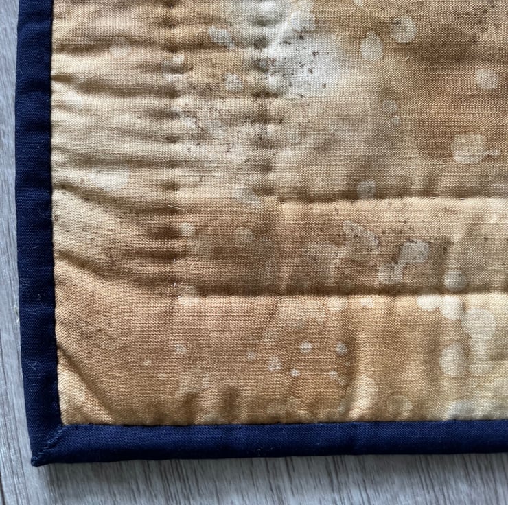 Hand finished navy binding.