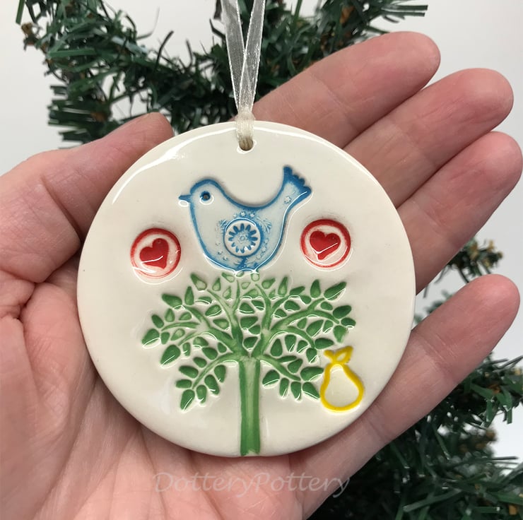 Partridge in a pear tree ceramic Christmas decoration Pottery decoration Xmas