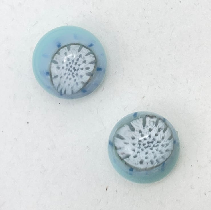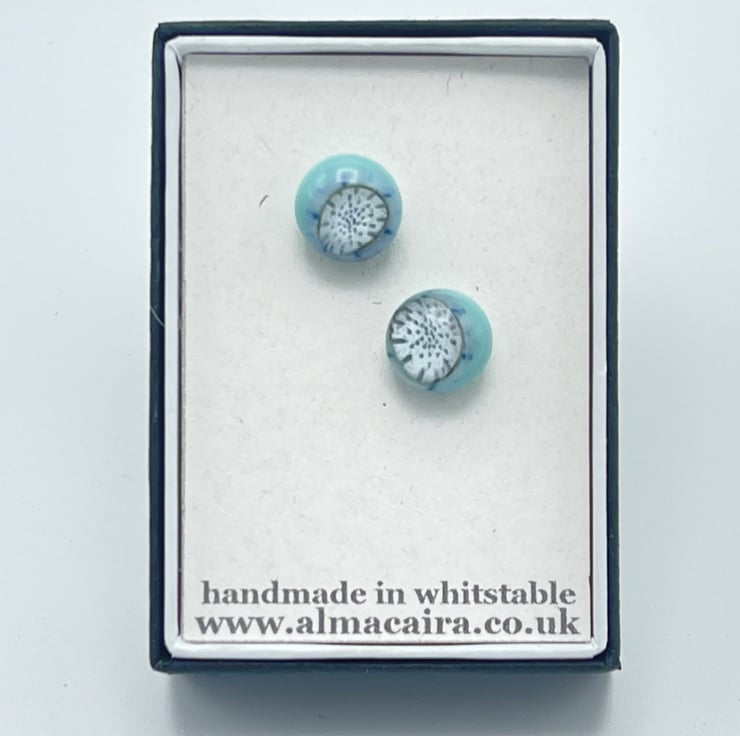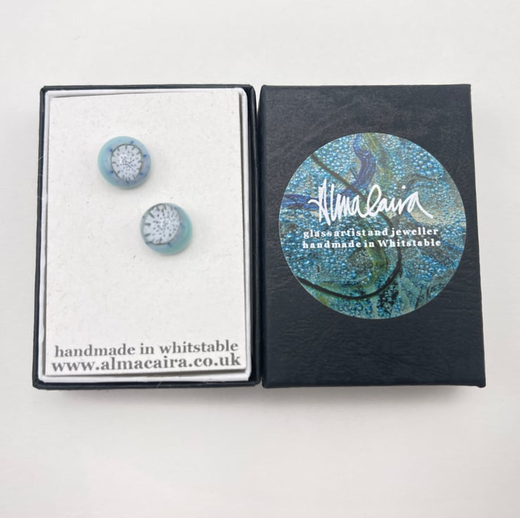 Kiln fused glass has a natural fluid quality and no two pieces are exactly the same. Earrings are created as a matching set but there will always be slight differences between the two and that's what's so lovely about designs being handmade!