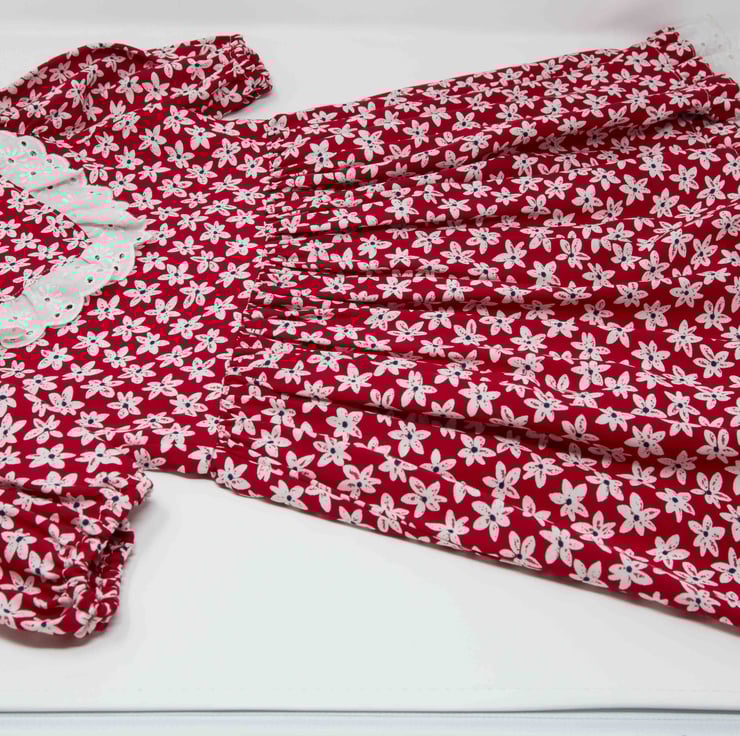 Trimmed with Broderie Anglaise at the collar.