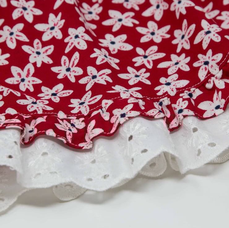 Gathered ruffle at the hem, layered with Broderie Anglaise underneath.