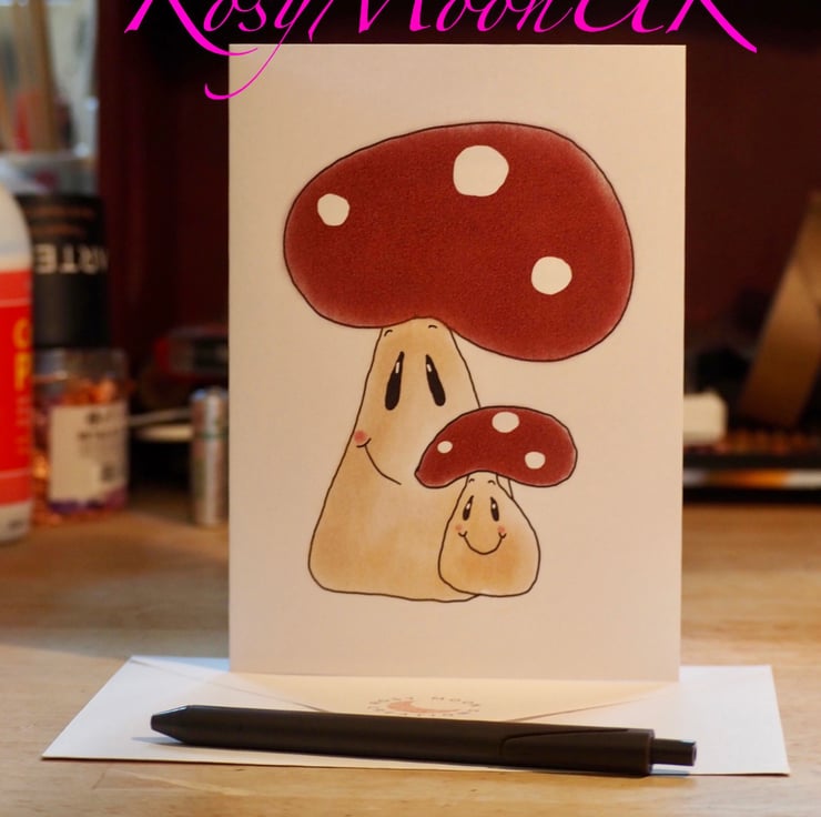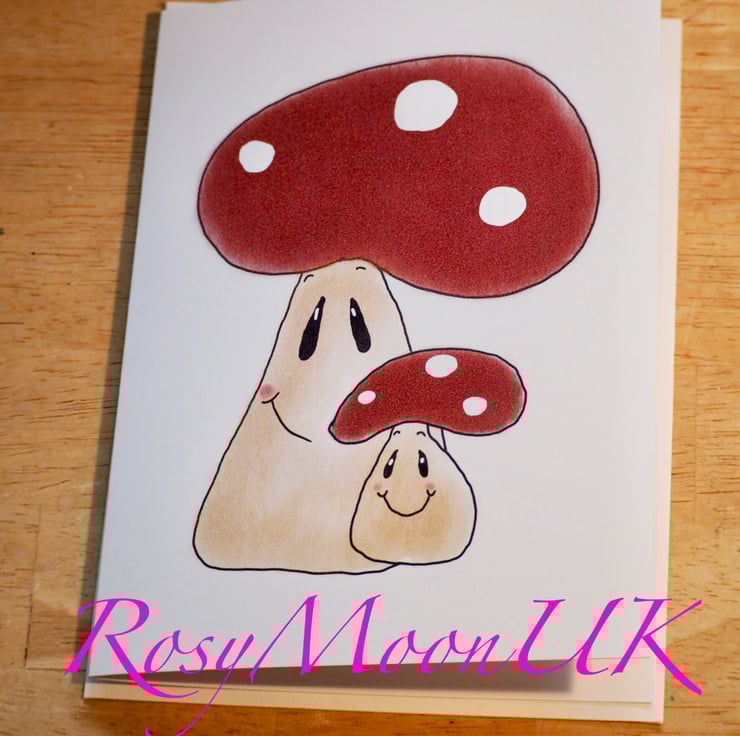 This cute blank card with one large toadstool and one little toadstool measures 12x18cm and comes with a matching envelope.