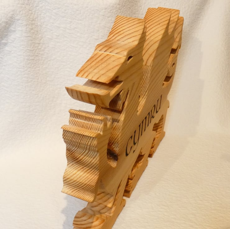 This unusual wooden Welsh Dragon ornament has been upcycled from reclaimed wood. The word 'Cymru' has been burnt into the wood by means of pyrography. It would make a lovely table centerpiece or mantlepiece ornament. This would make a perfect gift for a number of occasions such as a Housewarming Gift, or as an Easter gift.