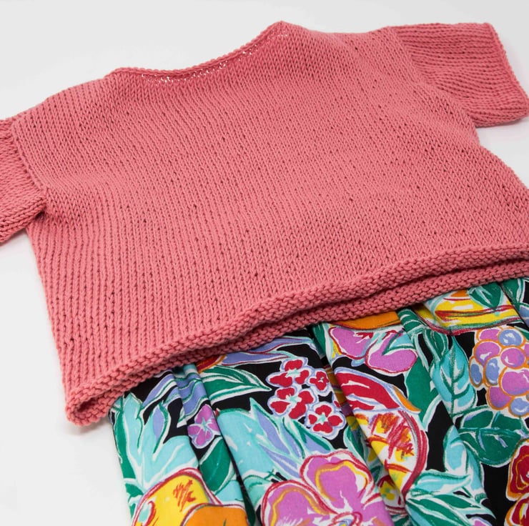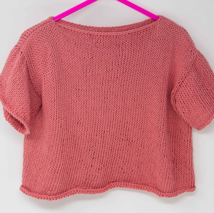 Blossom pink, short-sleeved jumper.