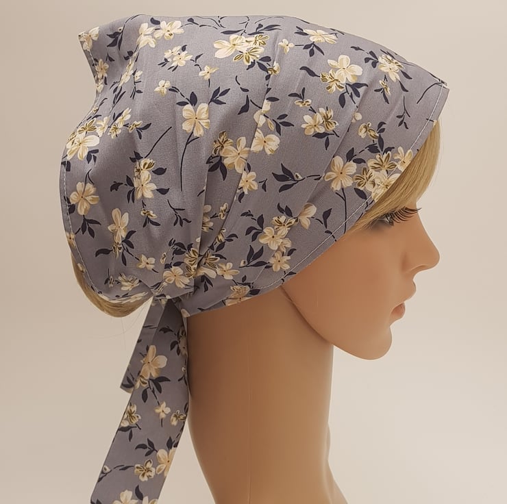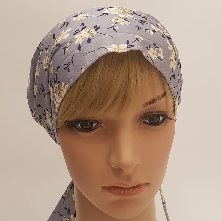 Self tie head scarf for women, wide cotton headband, floral hair scarf.