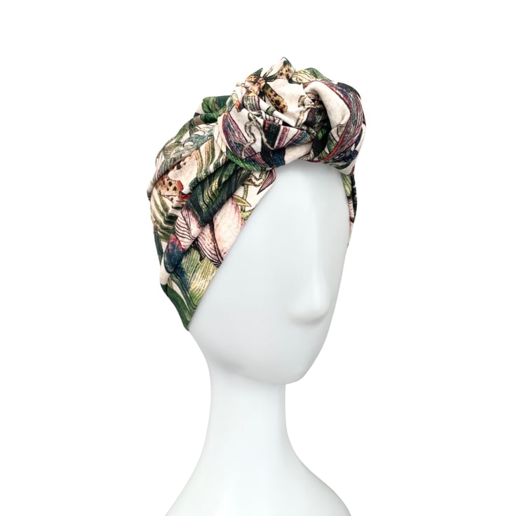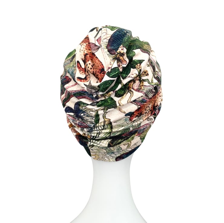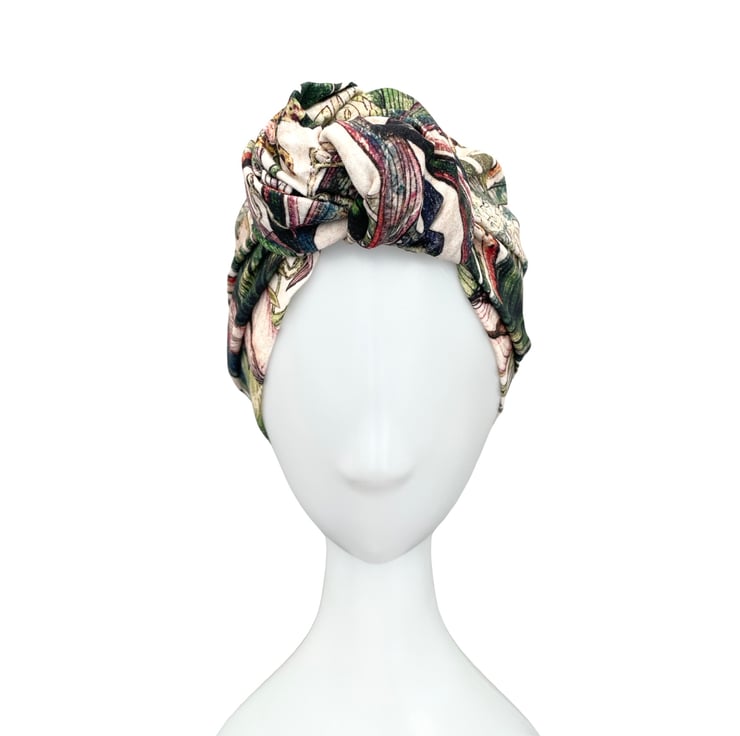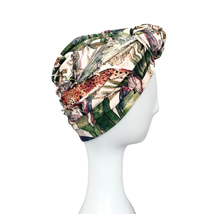Please wash with mild detergent by hand washing or in a light load/delicates cycle on no more than 30 degrees. Lay turban hats flat to dry.