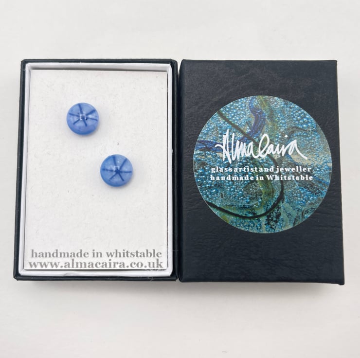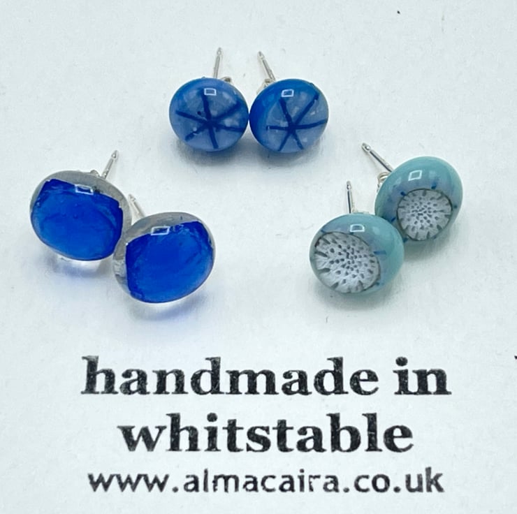 Kiln fused glass has a natural fluid quality and no two pieces are exactly the same. Earrings are created as a matching set but there will always be slight differences between the two and that's what's so lovely about designs being handmade!
