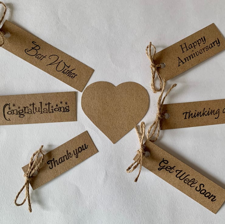Jute string is wound around the spine of the card and tied in a bow with a greeting added.