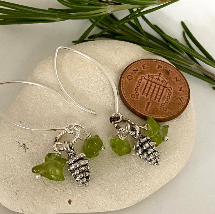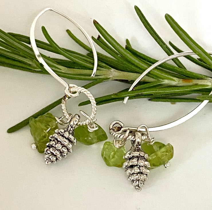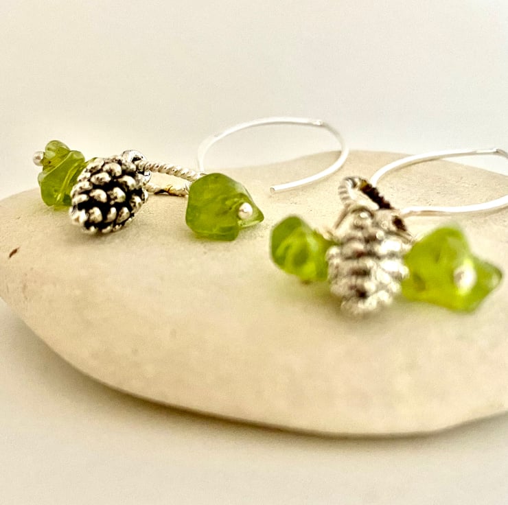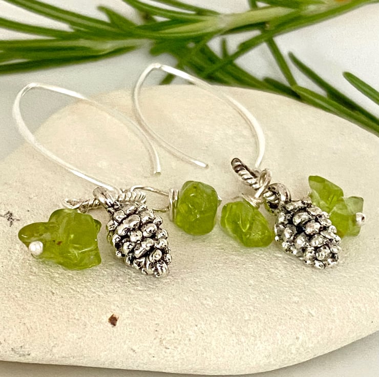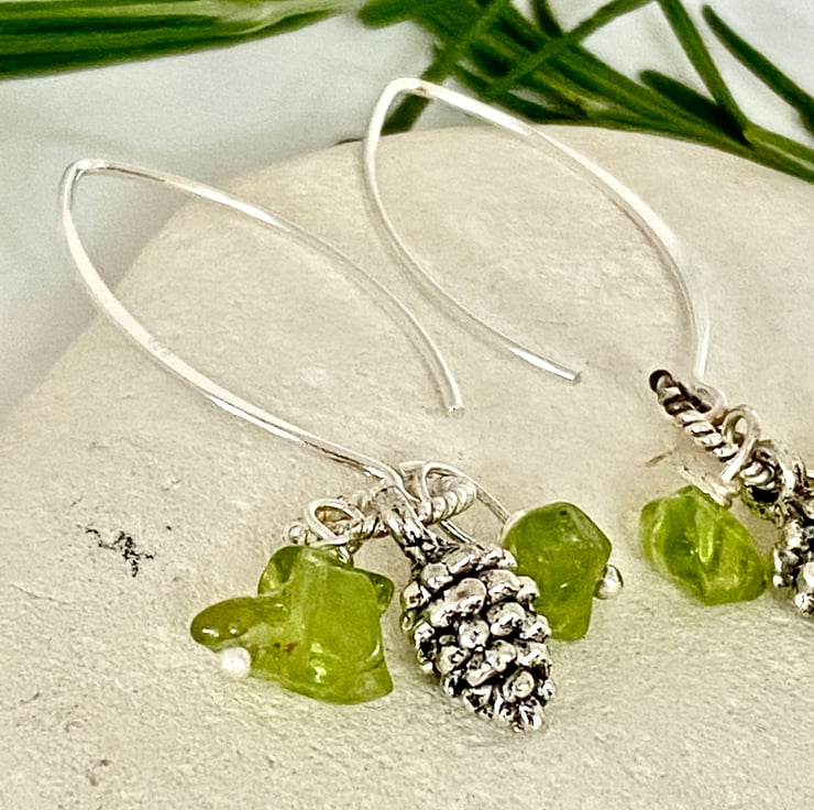Pinecone Periodot Silver, Metal Long Drop Earrings