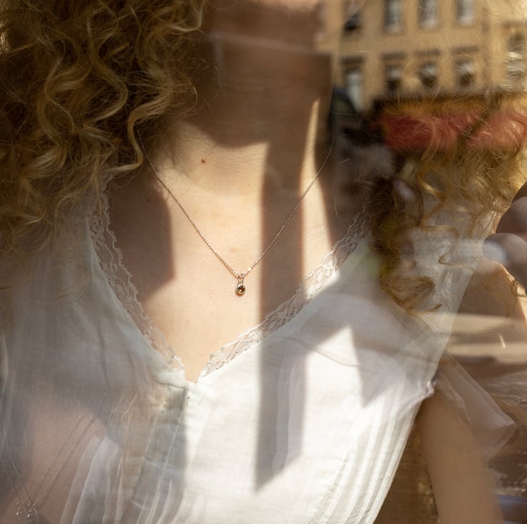 These beautiful gemstone pendants sit perfectly on an 18 inch diamond cut chain, & measure approx 6mm. As a handmade, recycled sterling silver item, each pendant will slightly vary in finish.