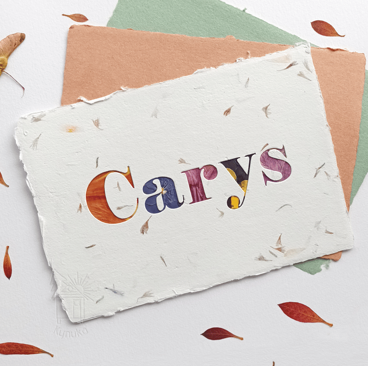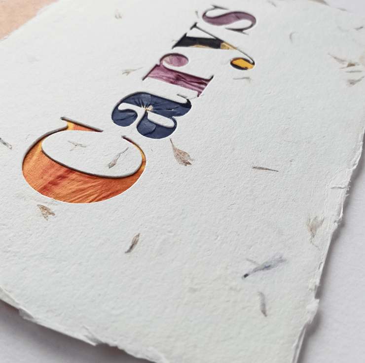 This is an original one off piece, custom made for you using sustainably sourced flowers and handmade paper made from recycled waste paper. Please be aware the flowers will be picked at random to suit the shape of the letters, the photos represent examples