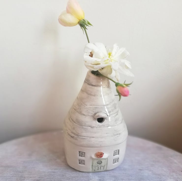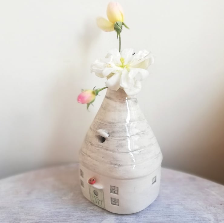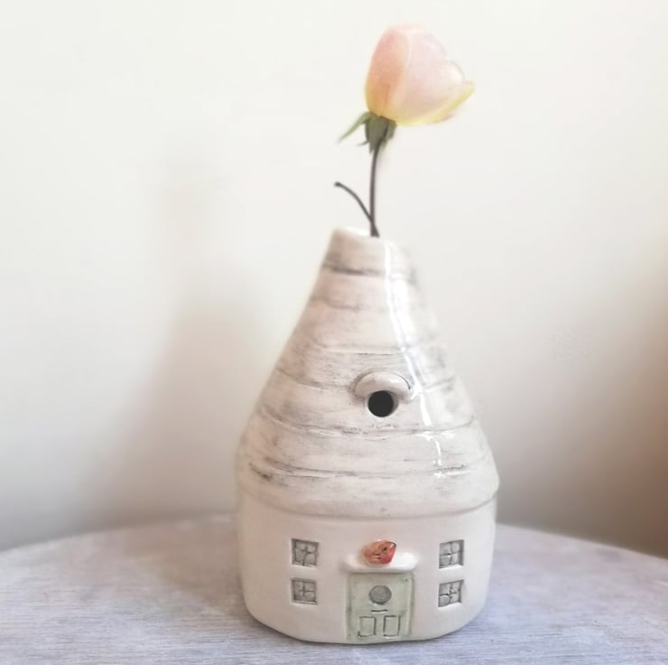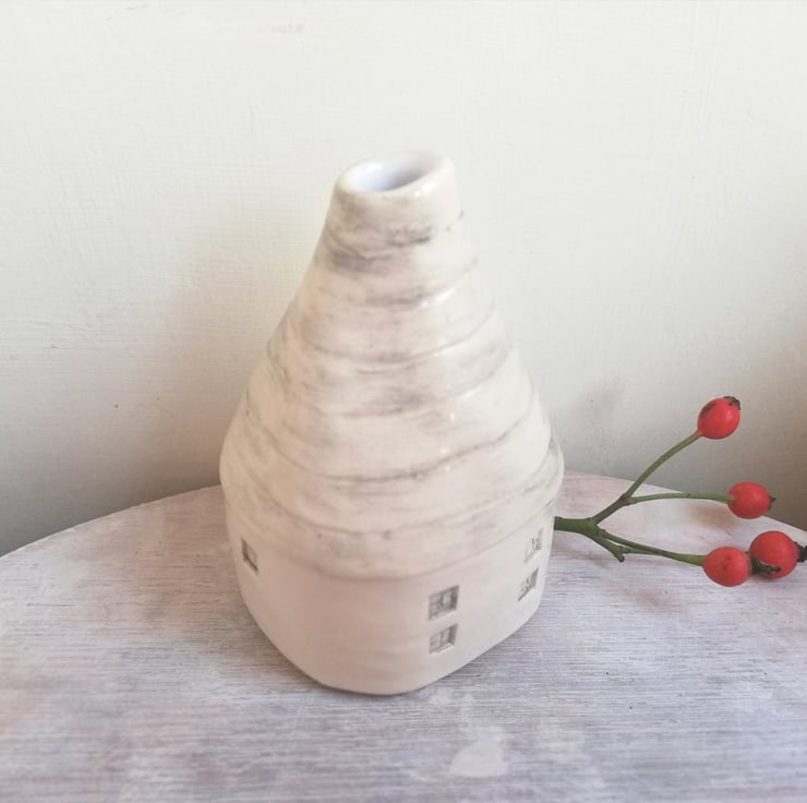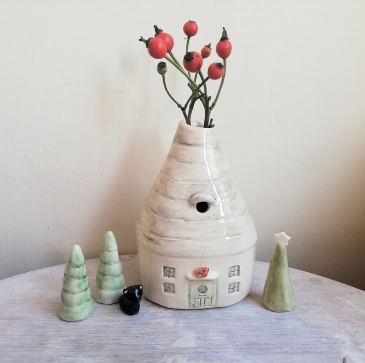 I love model houses and was inspired to produce a little bud vase. It looks rather lovely with a ceramic tree