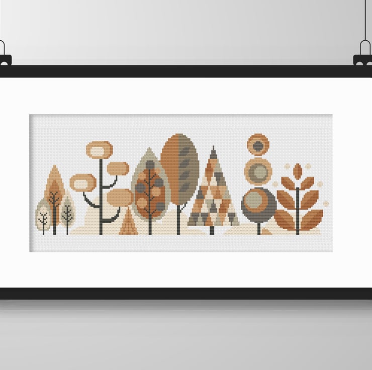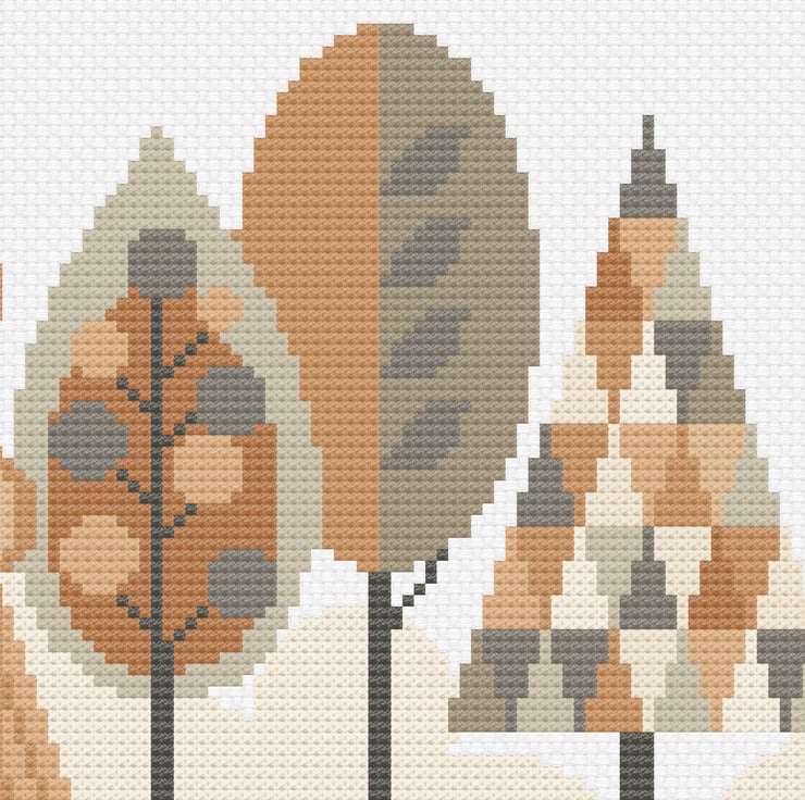 Cross Stitch Scandinavian Forest Trees - PASTELS - Grey/Beige - Modern Folk Art design by Vivsters - PDF counted chart 050G