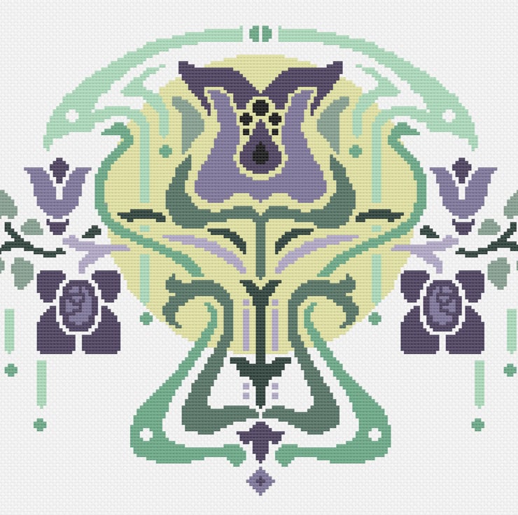 Cross Stitch Pattern Art Nouveau, Arts and Crafts, Deco Flower vase pattern design by Vivsters - Instant download PDF counted chart 072: