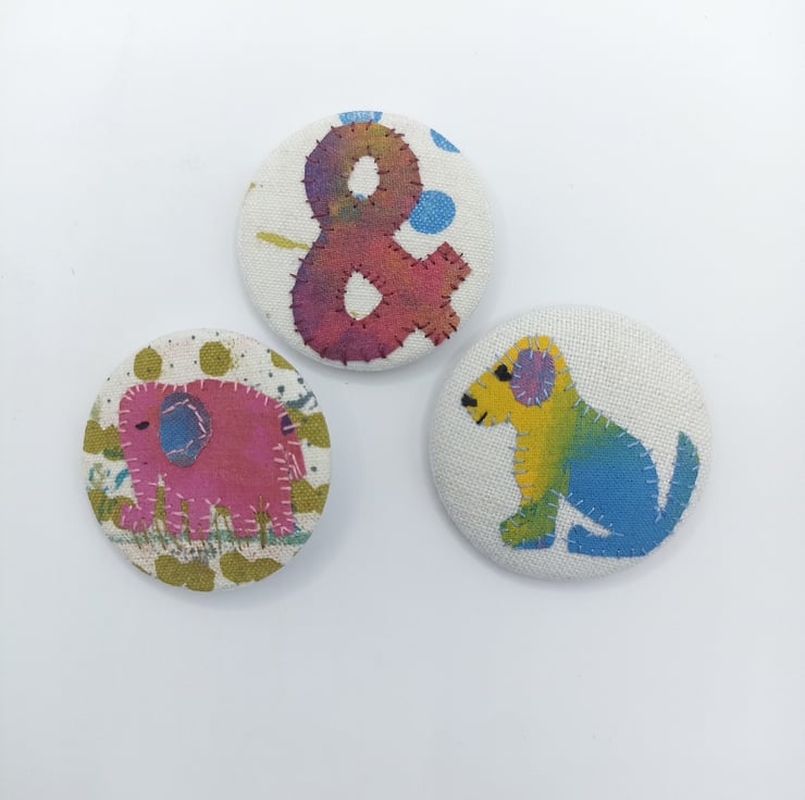 A hand stitched art work using my own painted fabrics. These have been carefully chosen, cut and stitched in place. The background is a plain white cotton onto which I have carefully sewn this happy dog.