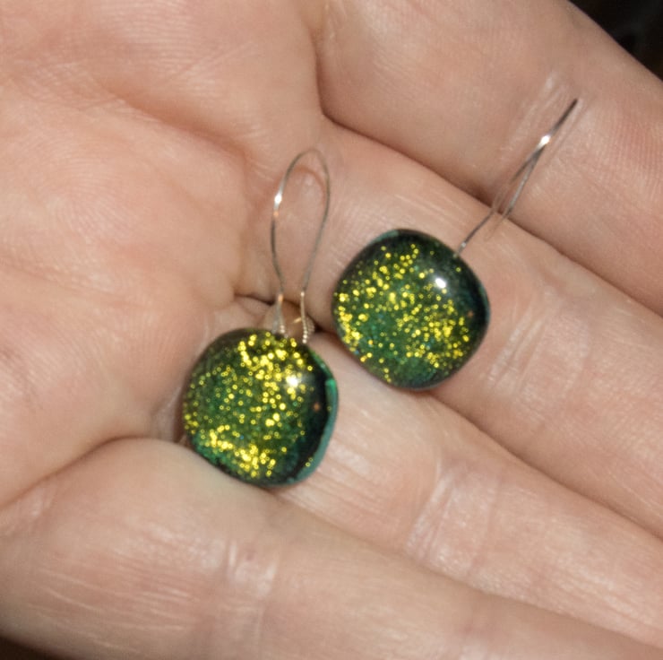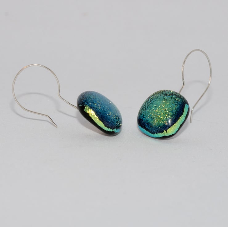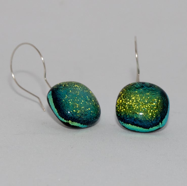 These glass earrings catch the light and sparkle! They will make a great addition to any collection of contemporary jewellery.
