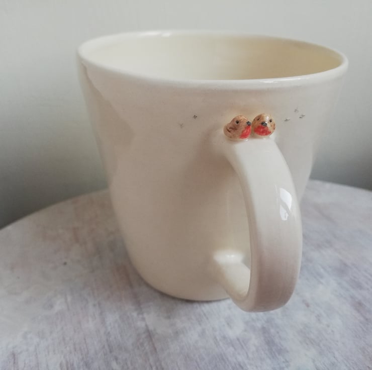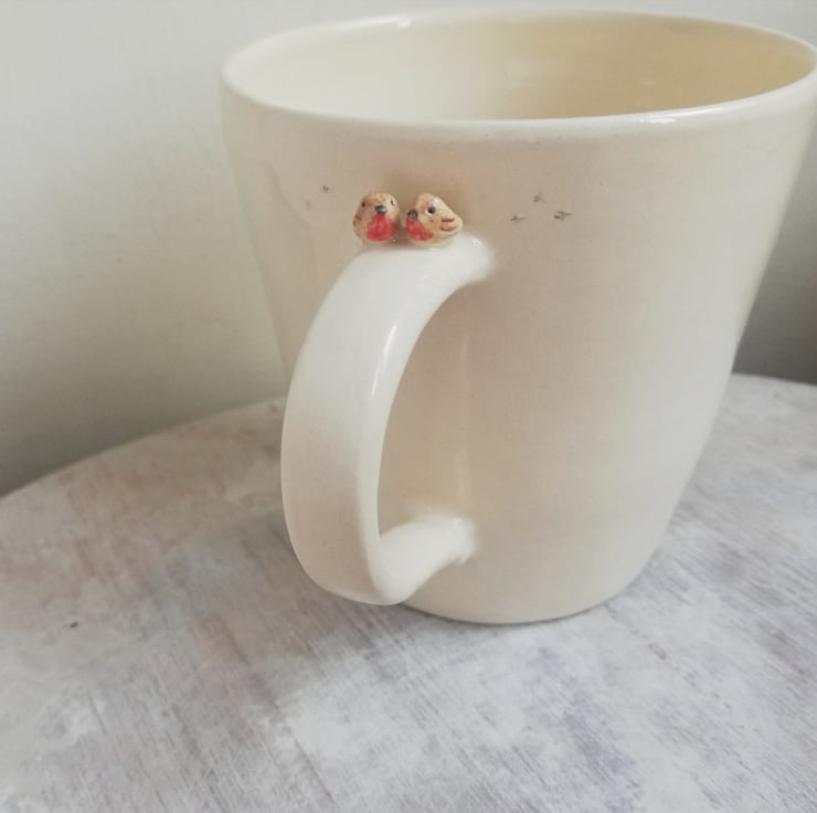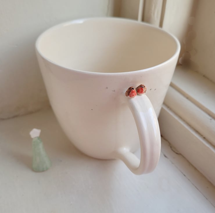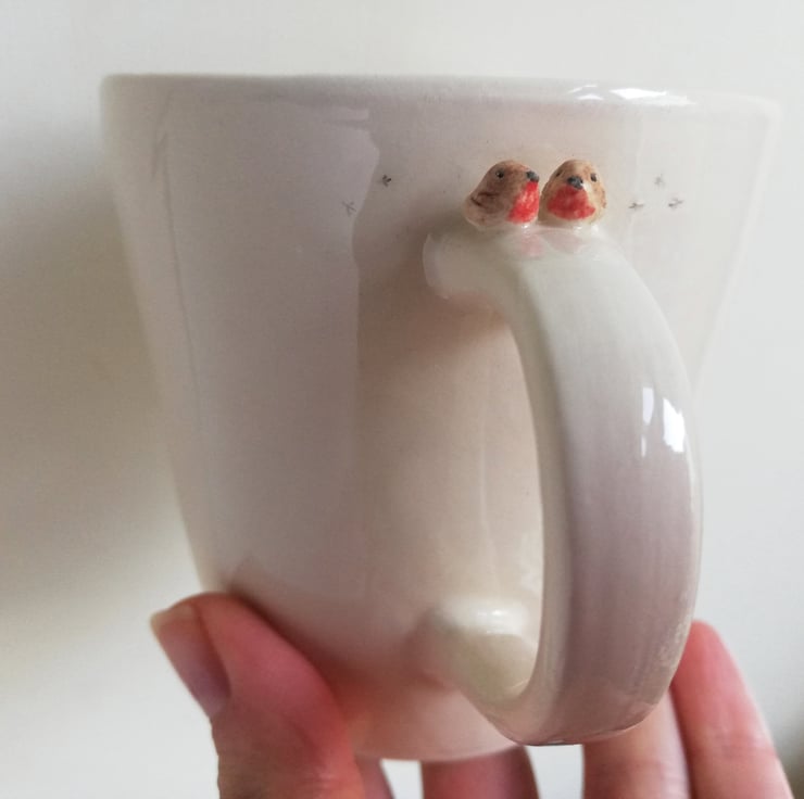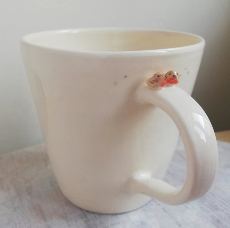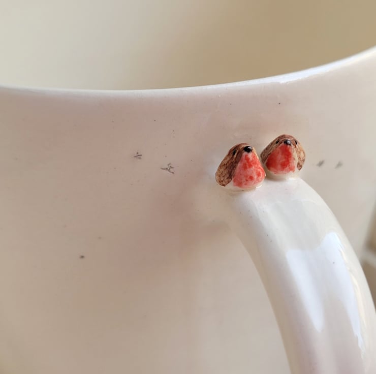 I thought it would be a lovely idea to make a unique cup with two little friendly robins sitting on the handle to make you smile and add some fun to a lovely cup of tea or coffee