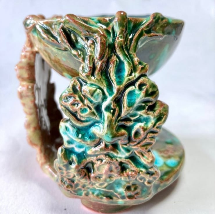 Each piece is hand- crafted in clay using a combination of press moulds from my original designs and then hand midelling so no two are exactly the same.