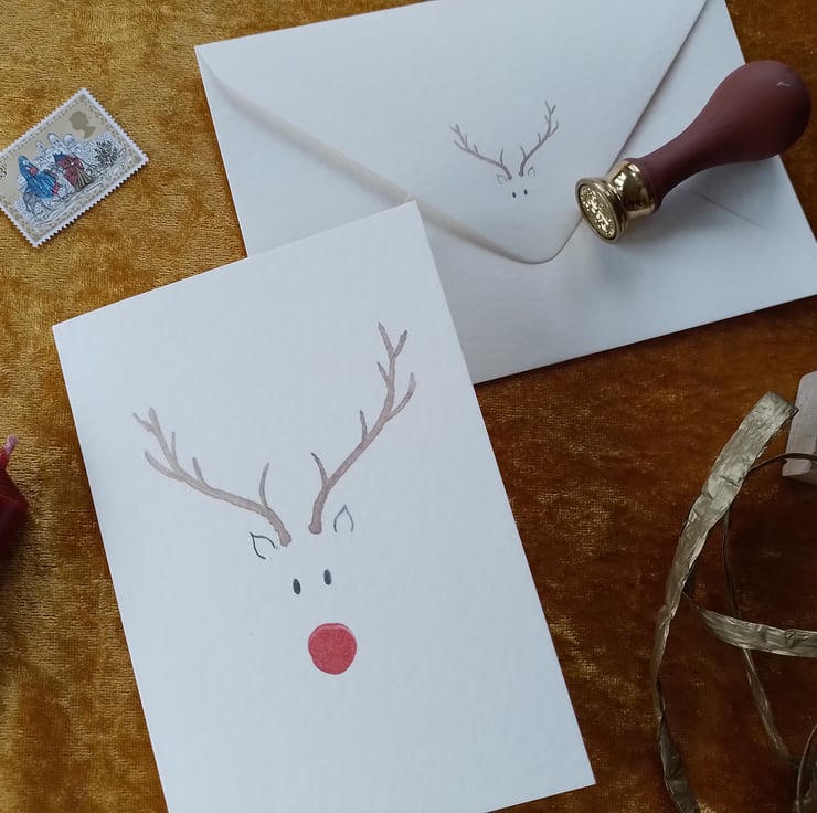 I had a lot of fun making this Christmas card using sealing wax for Rudolph’s nose. This version uses an image of the wax, ensuring that it goes through the post as a normal letter.