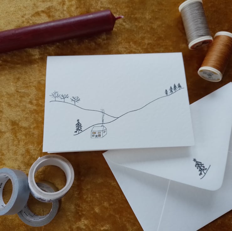 I created this card for my Mum last Christmas and as she liked it so much I knew I had to make it available in my shop. I love the idea of a cosy little house nestled in the snowy hills.