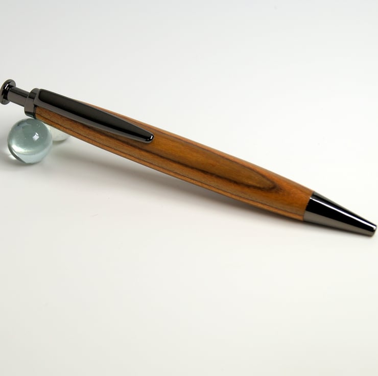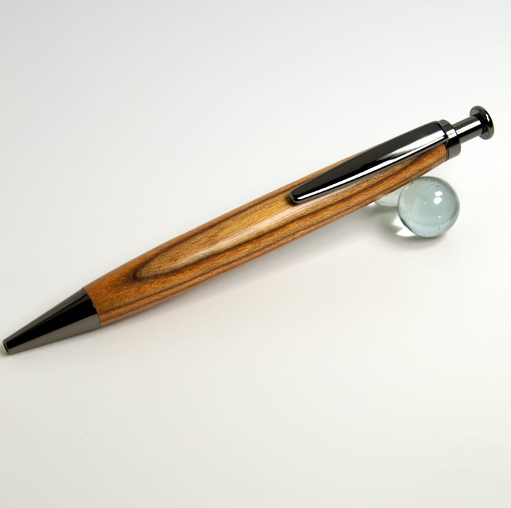 This pen was hand turned by me in my workshop in Suffolk, the metal parts are Gunmetal finish, Included in the price is a black card presentation box