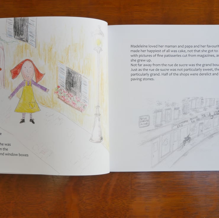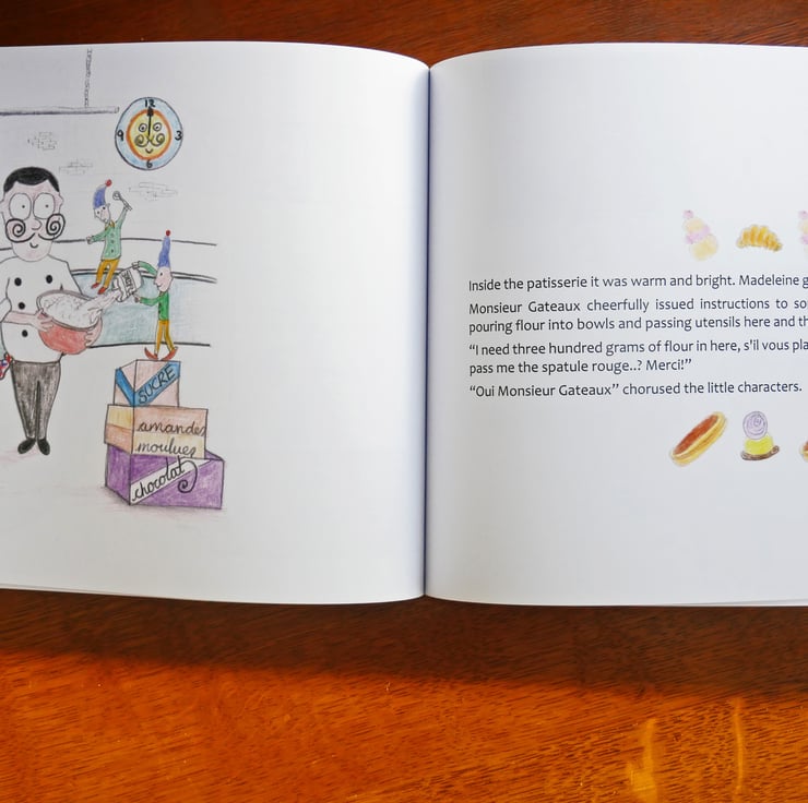 One day, on her way to school, Madeleine passes a brand new patisserie. She becomes fascinated by the cakes that magically appear in the window, the mysterious owner 'Monsieur Gateaux', and the other customers. She dreams of being able to try one of the delicious pastries, but doesn't think she will ever have enough pocket money. But tomorrow is Madeleine's birthday...