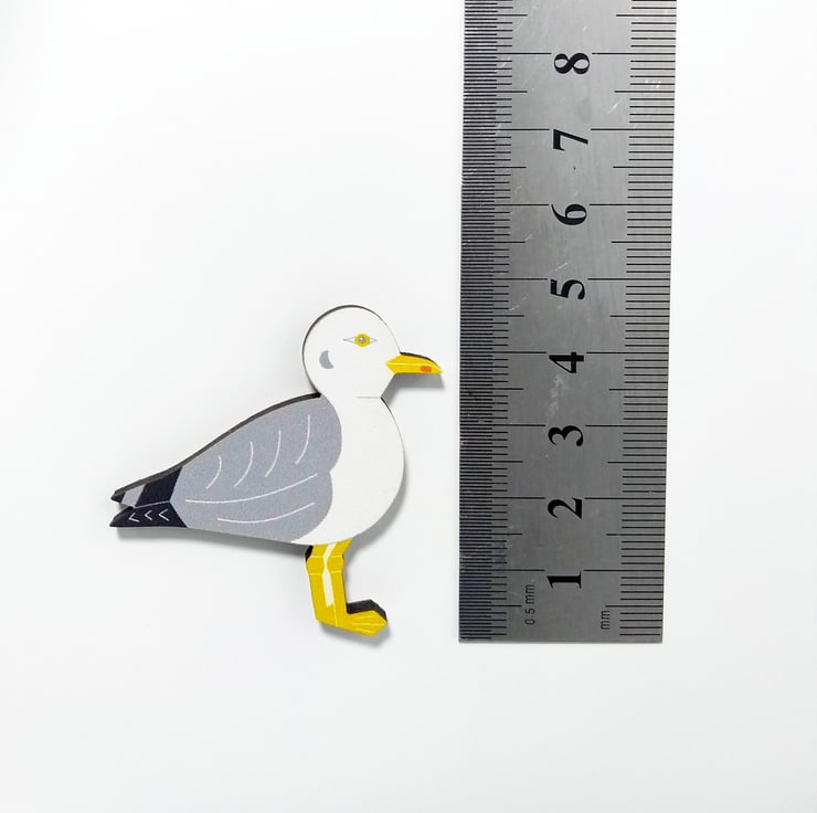 The seagull measures approx 44mm across and 43mm from top to bottom, thickness of badge is 4mm. The pin on the back is a metal butterfly clutch pin.