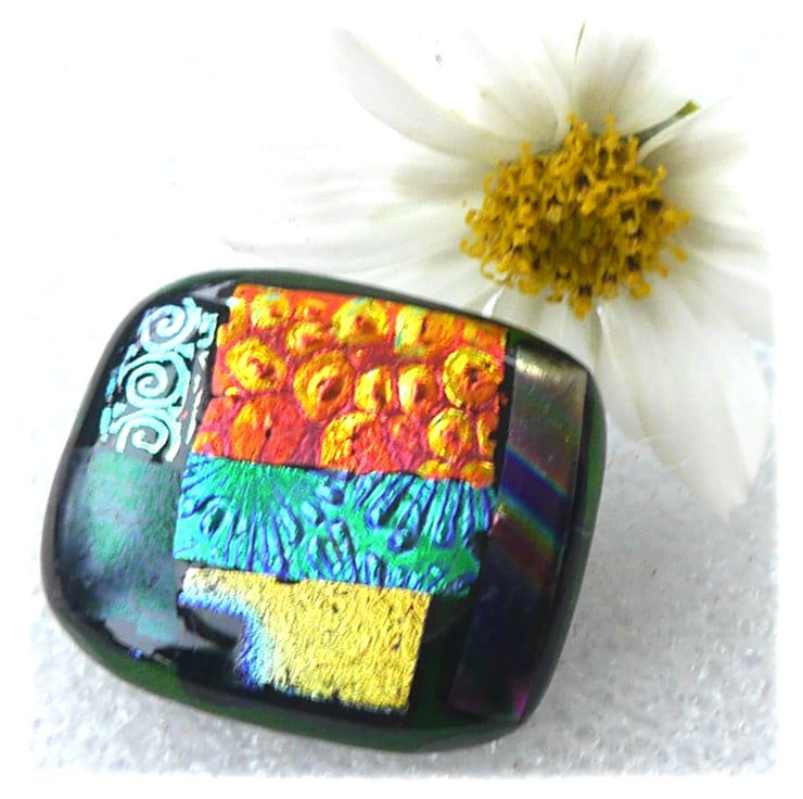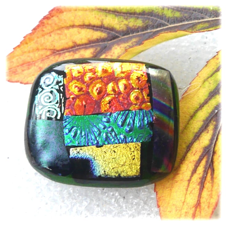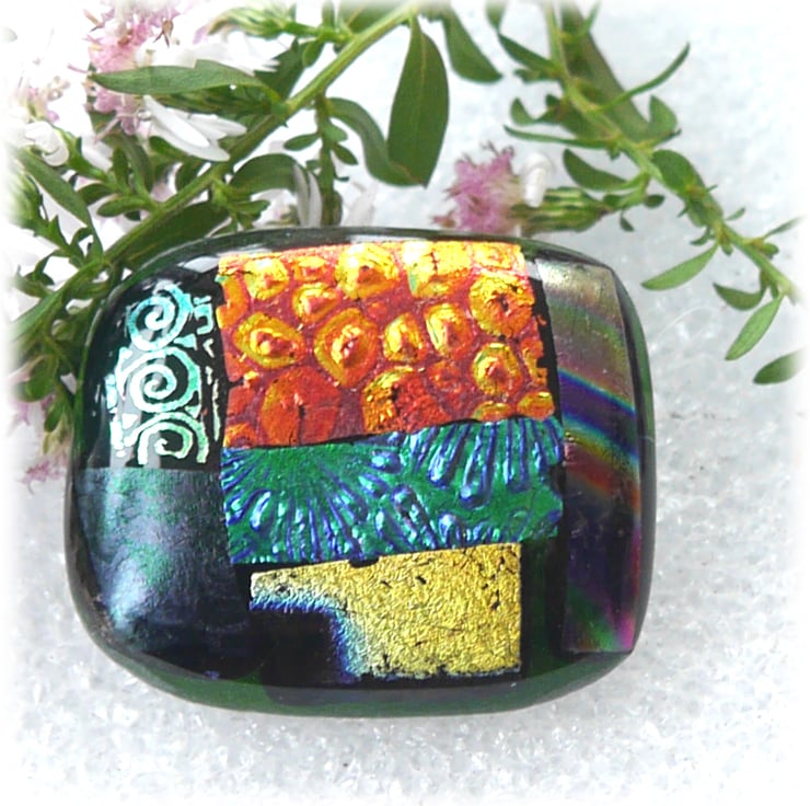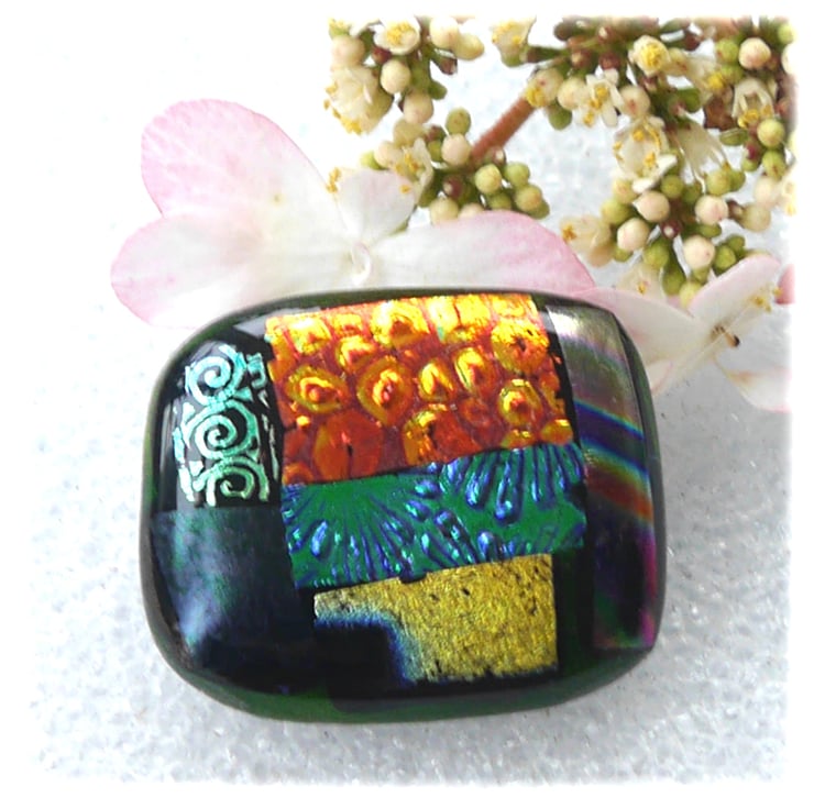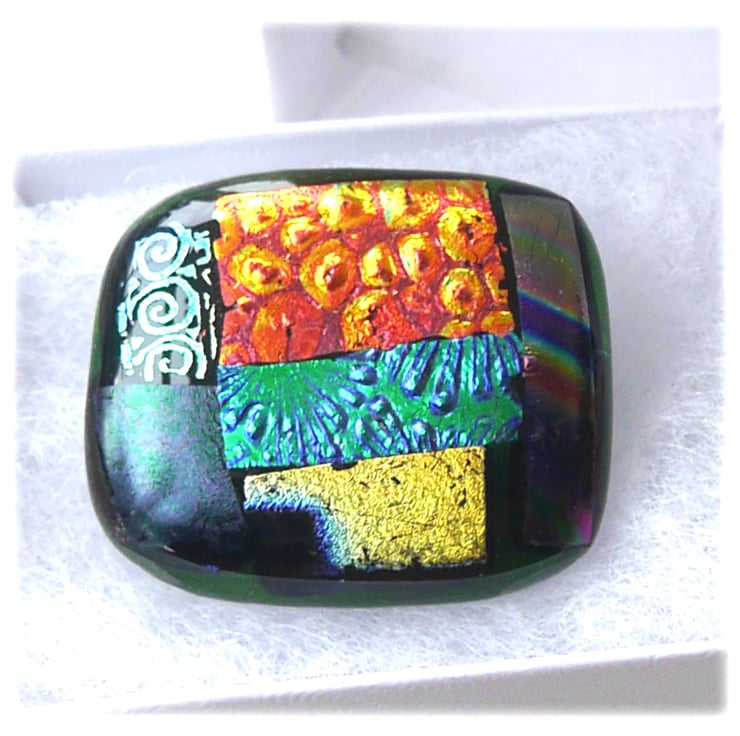The dichroic glass cabochon for this brooch was handmade, by me, with love.
