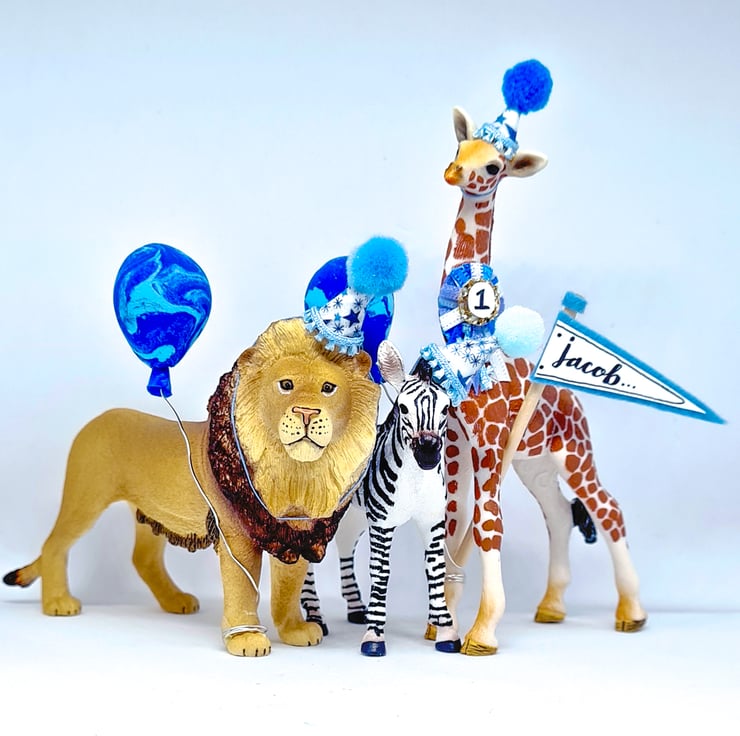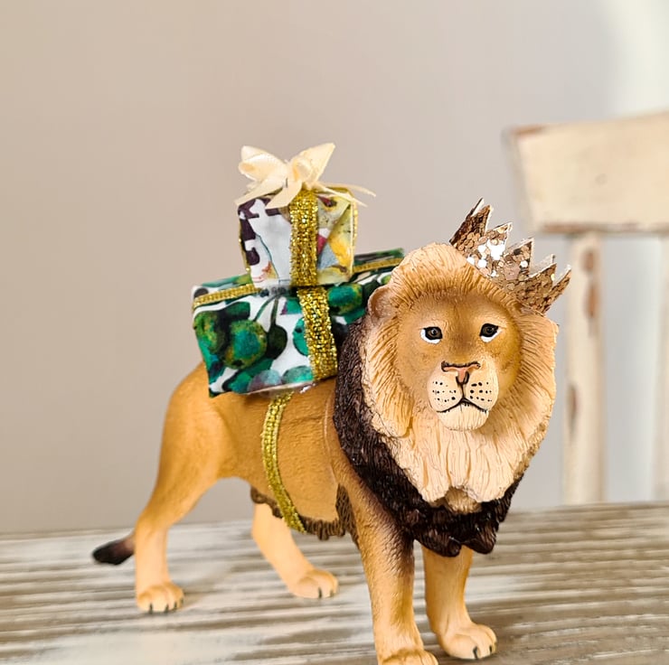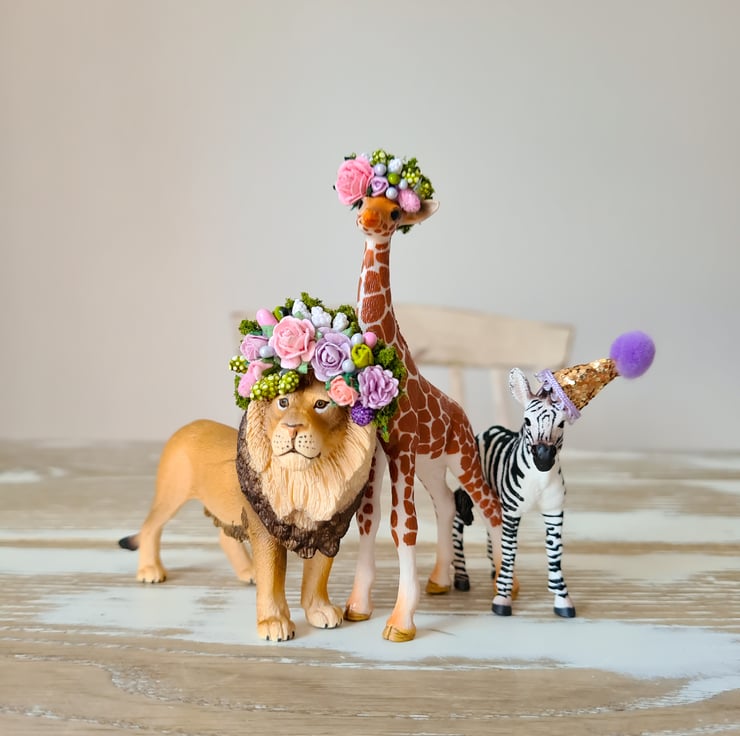 This listing is for one Schleich adult male lion. Your lion will come with a Liberty fabric party hat, glitter party hat, glitter crown or flower crown only - the choice is your's! Please just leave a note on your order stating your preference of head wear and the colours you'd like.
