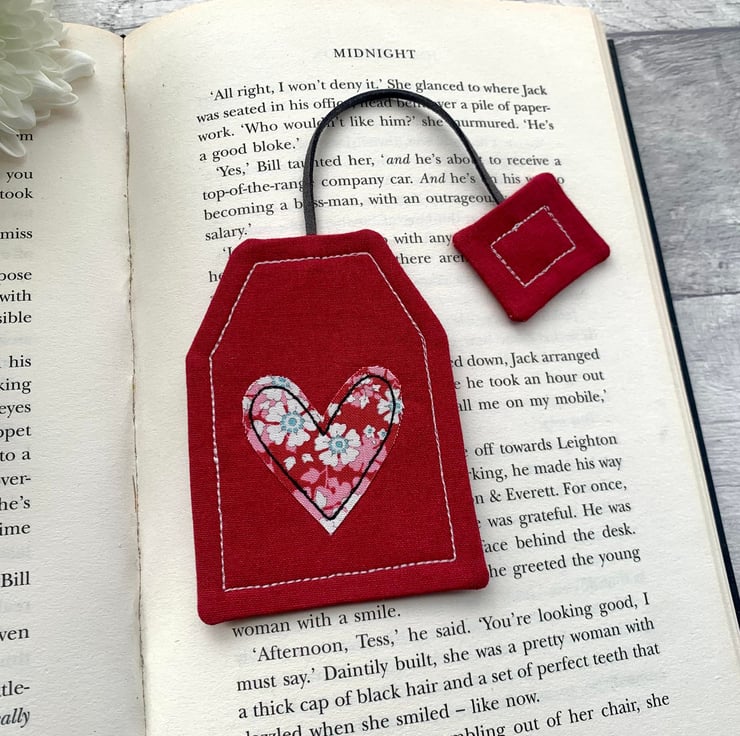 This listing is for 1 tea bag bookmark embroidered with a heart.