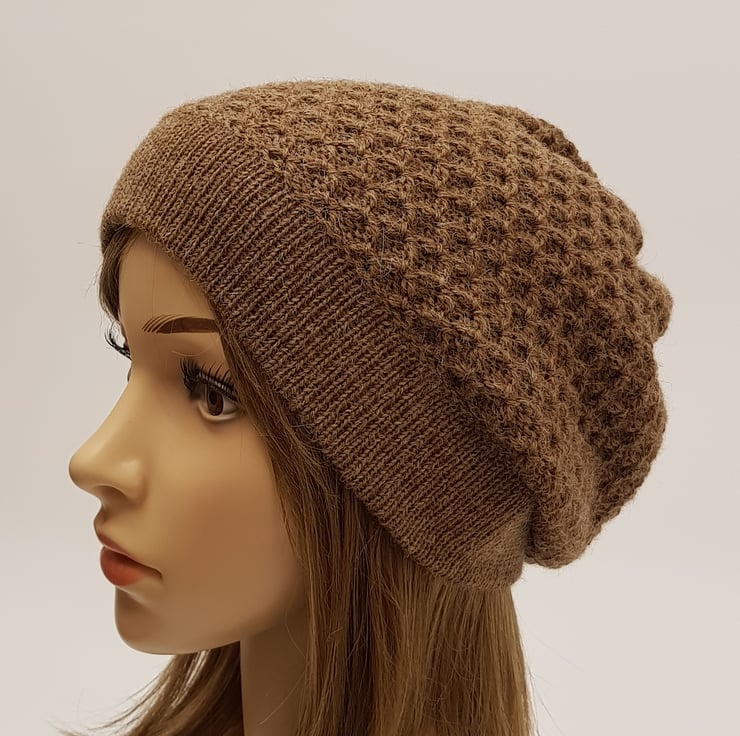 Handmade alpaca beanie, slouchy hat, fall tam, baggy winter hat.