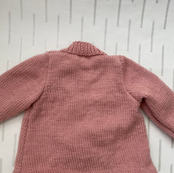 This pretty cardigan is hand knitted in a luxury 100% Falklands Islands wool.