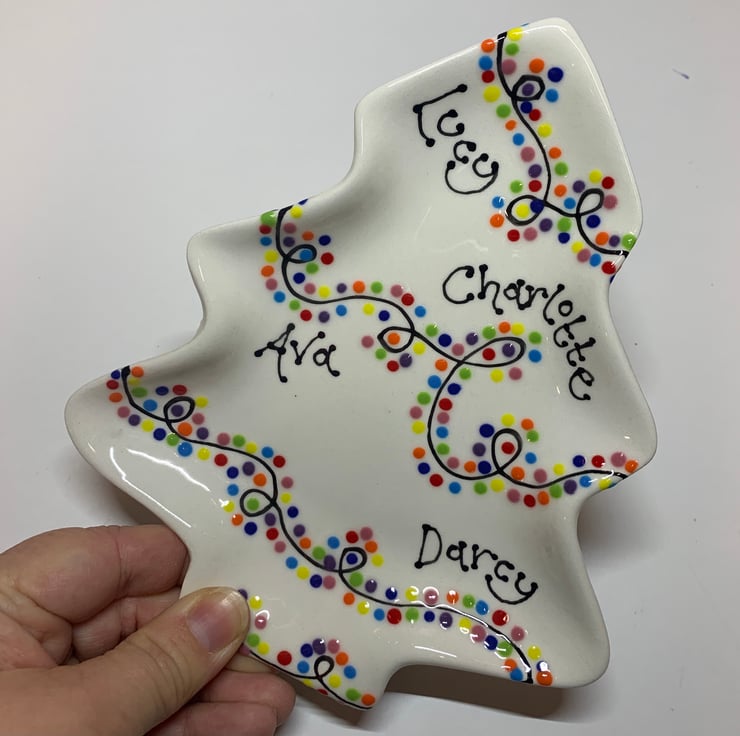 Personalised Ceramic Fairy Light Tree Dish, Unique Hand Painted Christmas Plate