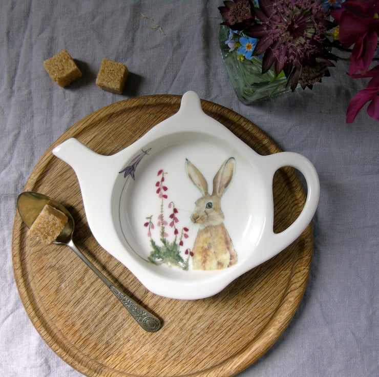 After decorating, the teabag rest is fired in my own small electric kiln to 800°C making it dishwasher safe.