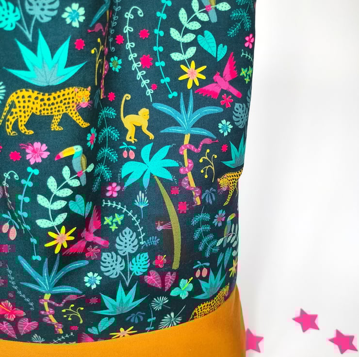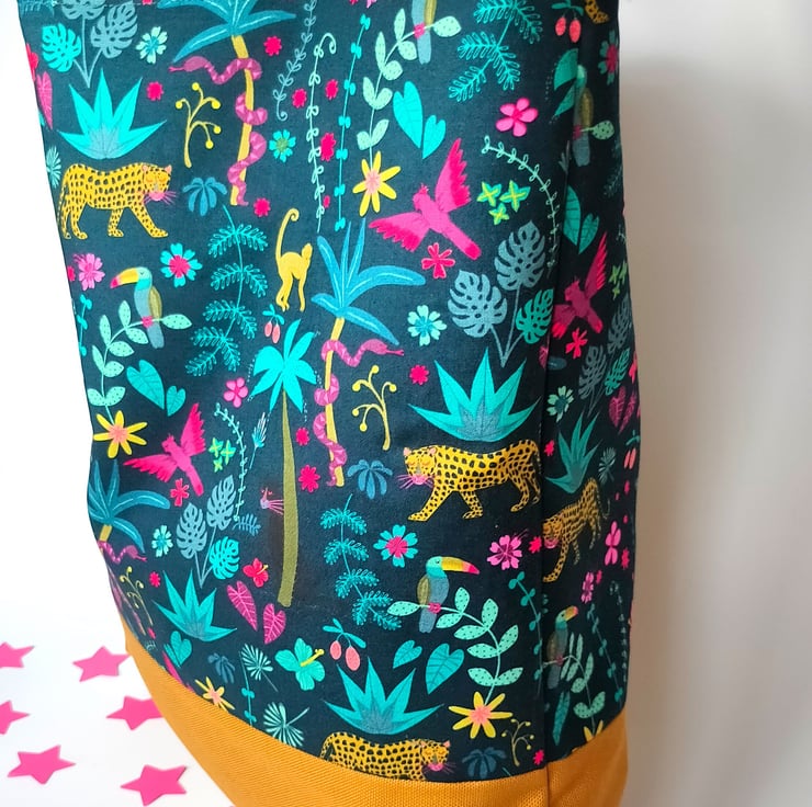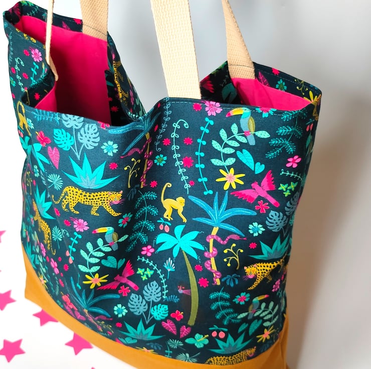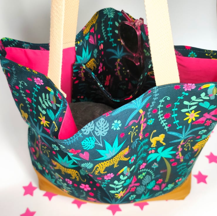 The beautiful jungle fabric is the star of this bag, it brings so much joy! You'll love using it... Wherever you choose to take it.