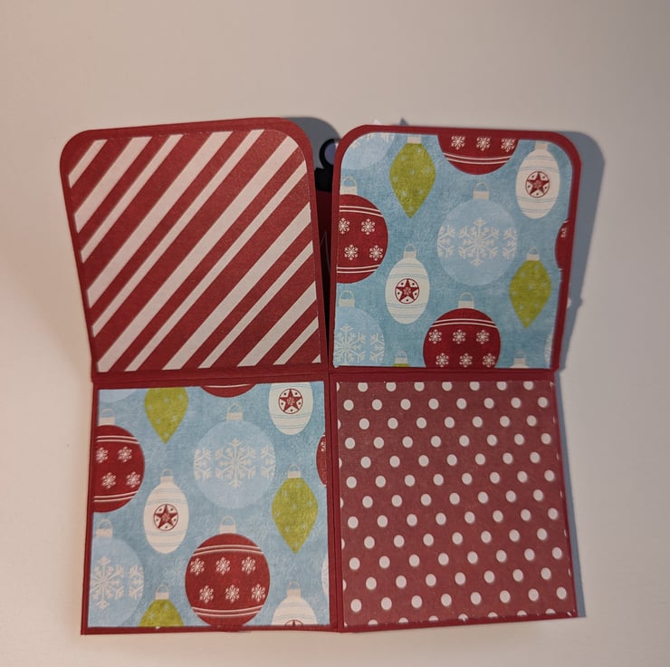 This card folds flat to fit in the envelope provided and measures around 14 cm square when flat.