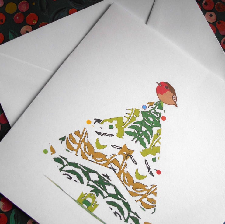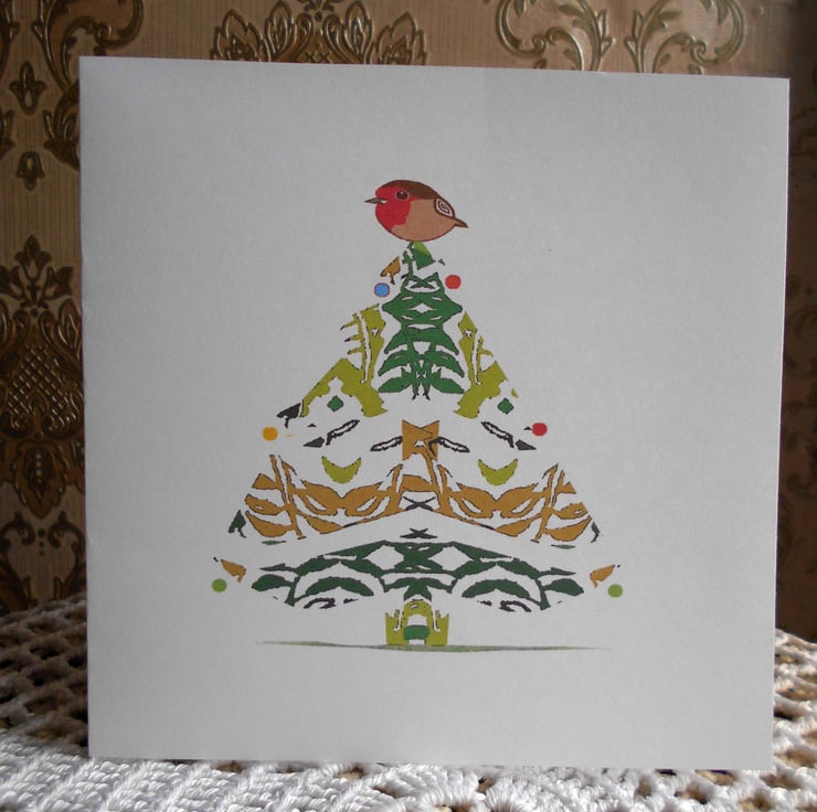 Our little robin who visits our garden every day was the inspiration for this card! I thought, wouldn't it be lovely if we could invite our robin into the living room and have him sit on our Christmas tree. Hahaha, not very likely!! So I drew this card instead!!!