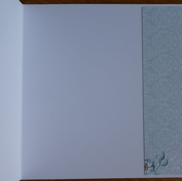 The right hand side of the card has a scalloped edge with an embossed polka dot design which has been left white and this is highlighted with a strip of matching duck egg card along the inside edge of the card.